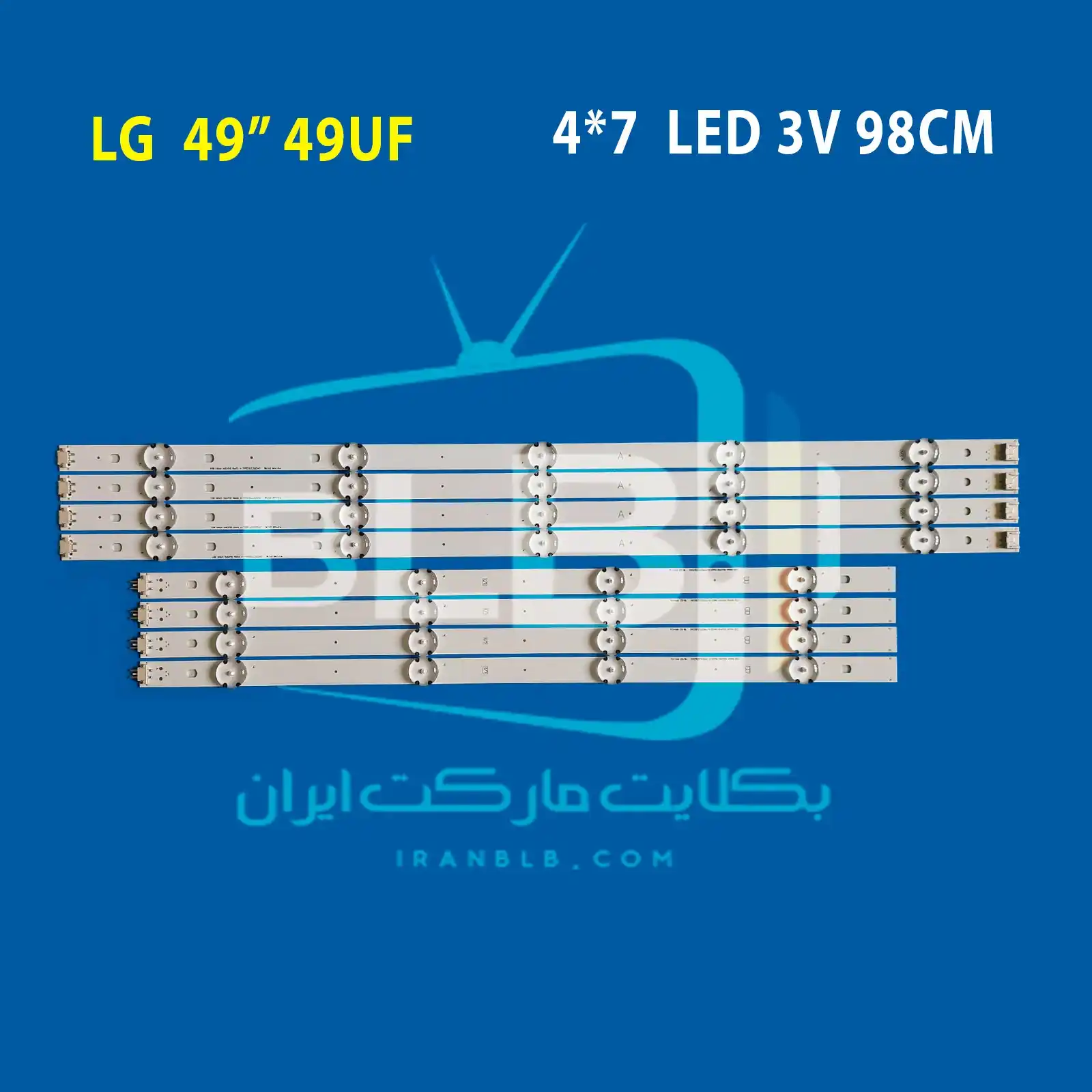 بکلایت ال جی مدل 49UF64000 , 49LF5100 , 49UJ630V دارای 4 شاخه لبه ای می باشد بطوریکه  هر شاخه شامل 9 ال ای دی با ولتاژ 3 ولت است. طول هرشاخه 98 سانتی متر می باشد.