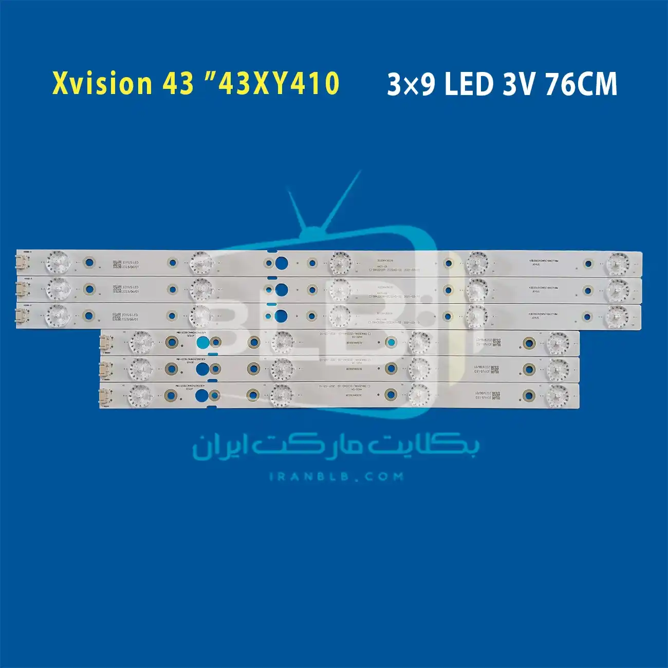 بکلایت ایکس ویژن مدل 43XY410 دارای 3 شاخه می باشد بطوریکه  هر شاخه شامل 9 ال ای دی با ولتاژ 3 ولت و به طول 76 سانتی متر می باشد.