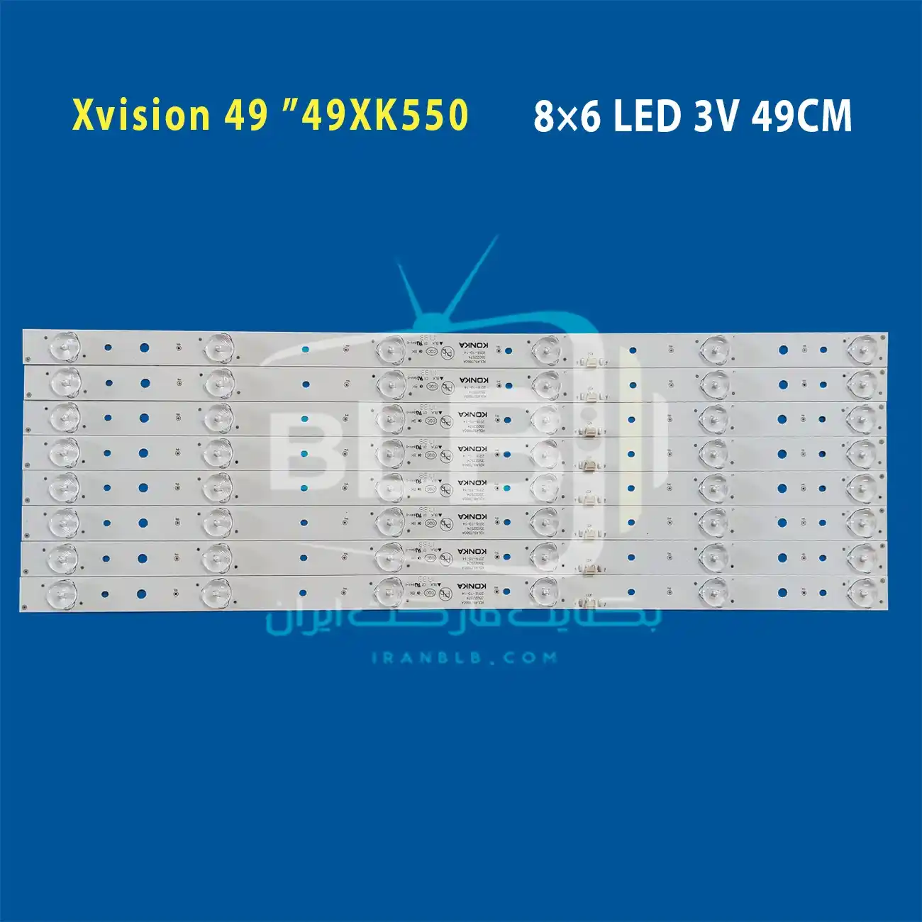 بک لایت ایکسویژن 49XK550 , 49XK555 مناسب تلویزیونهای 49 اینچ ایکس ویژن Xvision بوده و دارای 8 شاخه است که در هر ردیف 6 عدد LED لنزدار با ولتاژ 3 ولت بهکار رفته است، این بک لایت از برد آلومینیومی PCB ساخته شده که به دفع بهتر حرارت کمک میکند و در پشت شاخهها چسب سیلیکونی آبی رنگ مخصوص نصب شده است، همچنین با نوردهی یکنواخت، بدون ایجاد سایه و هاله، کیفیت تصویر مطلوب و روشنایی استاندارد را فراهم میکند.