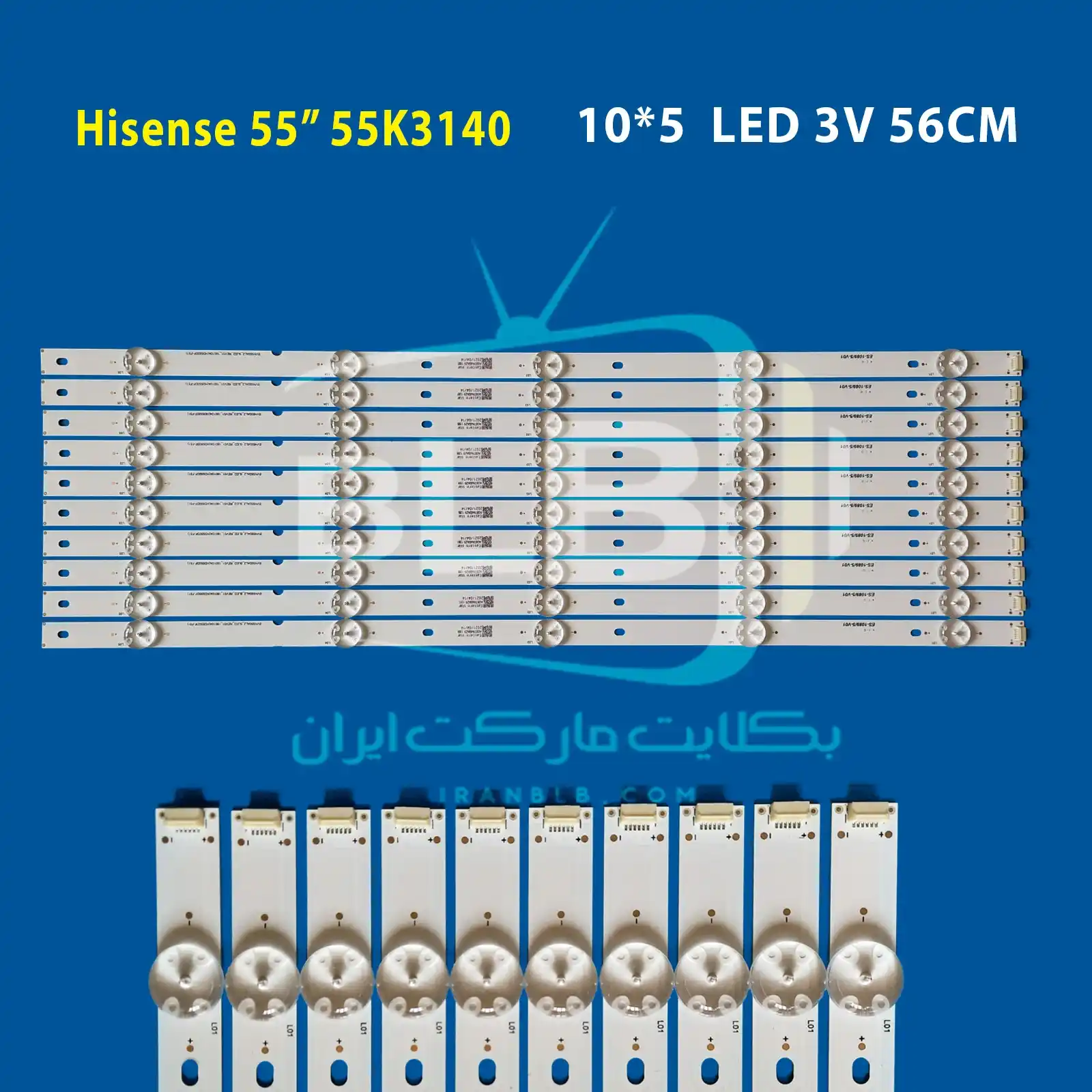 بک لایت هایسنس مدل 55K3110 , 55K3140 , 55N3000 مناسب تلویزیونهای 55 اینچ هایسنس Hisense بوده و دارای 10 شاخه است که در هر ردیف 5 عدد LED لنزدار با ولتاژ 3 ولت بهکار رفته است، این بکلایت از برد آلومینیومی PCB ساخته شده که به دفع بهتر حرارت کمک میکند و در پشت شاخهها چسب سیلیکونی آبی رنگ مخصوص نصب شده است، همچنین با نوردهی یکنواخت، بدون ایجاد سایه و هاله، کیفیت تصویر مطلوب و روشنایی استاندارد را فراهم میکند.
