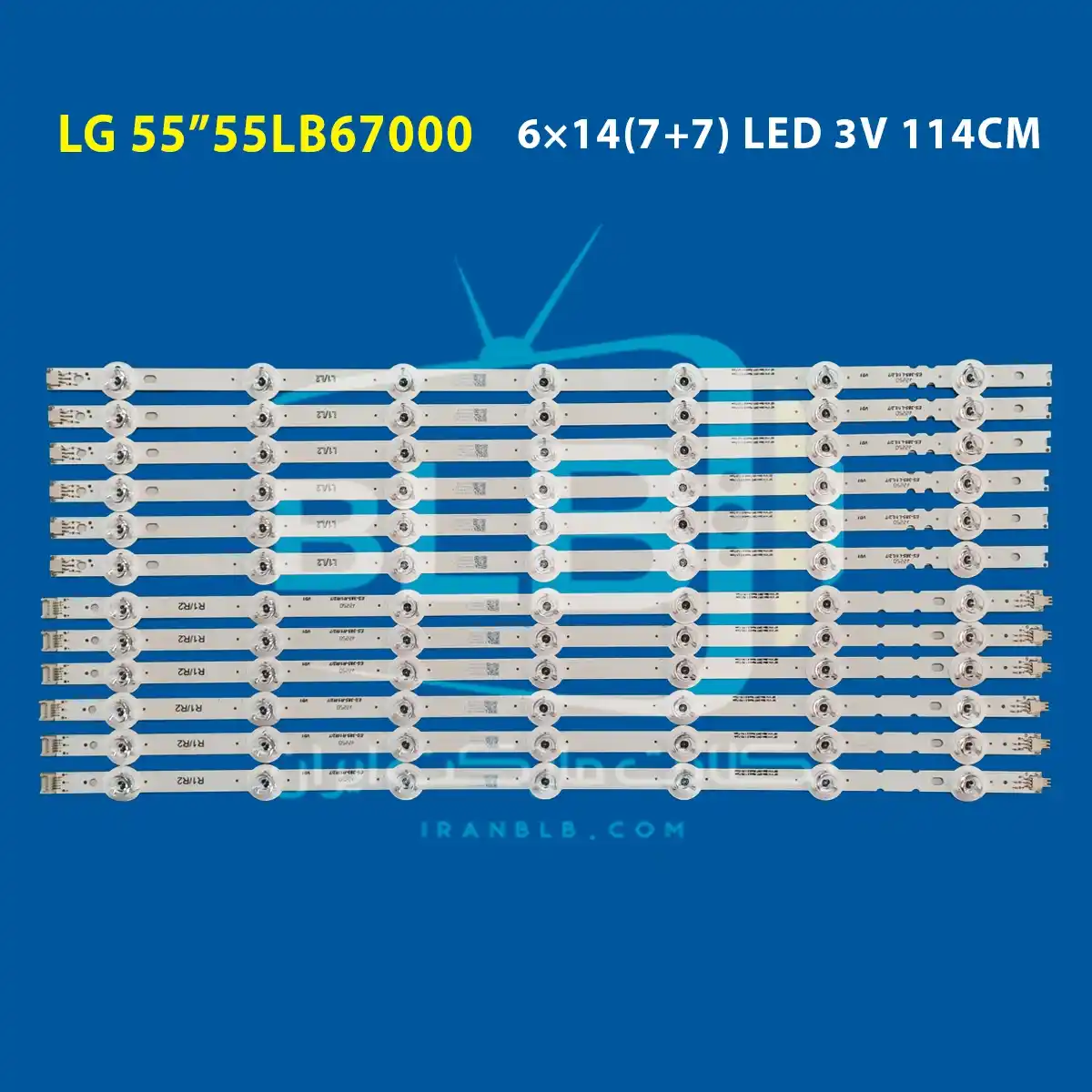 بکلایت الجی مدل 55LB67000 دارای 6 شاخه می باشد بطوریکه هر شاخه شامل 14 ال ای دی با ولتاژ 3 ولت و به طول 114 سانتی متر می باشد.