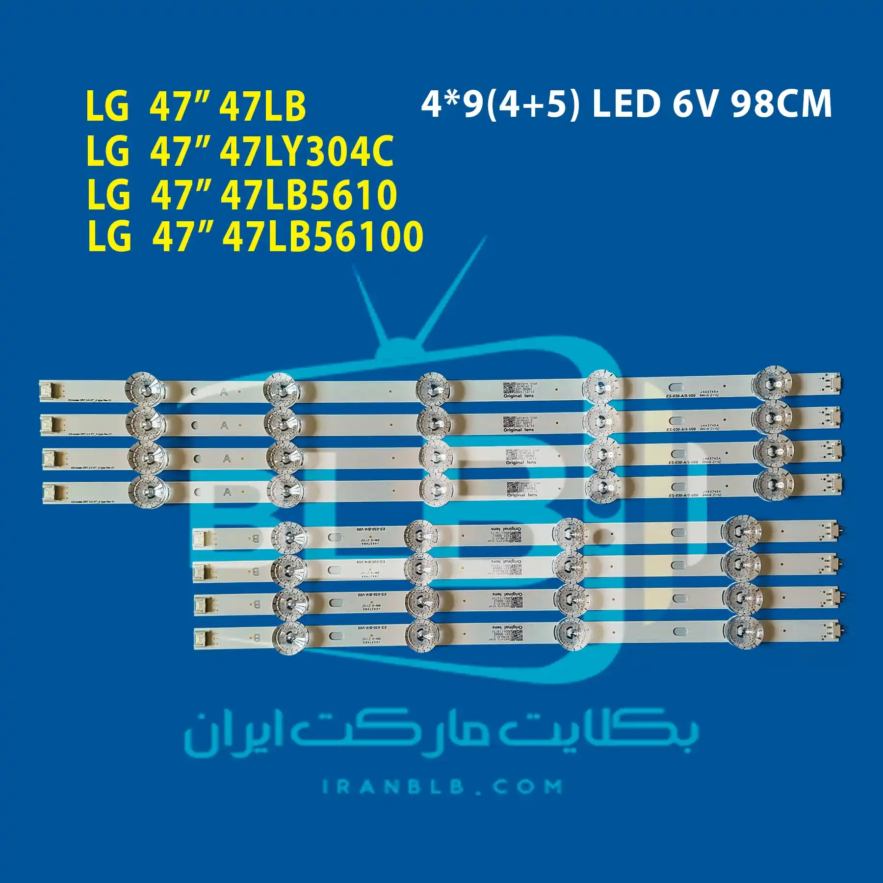 بکلایت الجی مدل 47LB دارای 4 ردیف (A+B) می باشد بطوریکه هر ردیف شامل 9 ال ای دی با ولتاژ 6 ولت است. طول هر ردیف 98 سانتی متر می باشد.