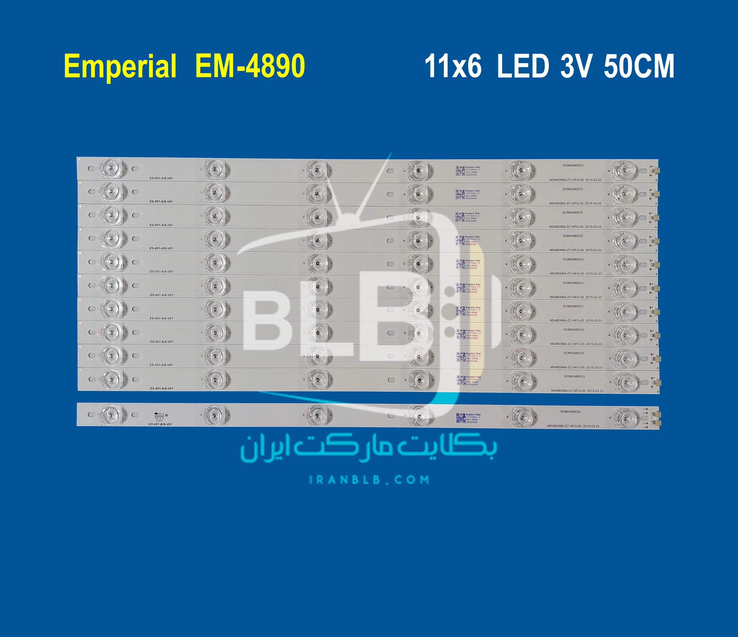 بک لایت تلویزیون امپریال EM-4890 مناسب تلویزیون‌های 48 اینچ امپریال emperial آلومینیومی PCB ساخته شده که به دفع بهتر حرارت کمک می‌کند و در پشت شاخه‌ها چسب سیلیکونی آبی رنگ مخصوص نصب شده است، همچنین با نوردهی یکنواخت، بدون ایجاد سایه و هاله، کیفیت تصویر مطلوب و روشنایی استاندارد را فراهم می‌کند.