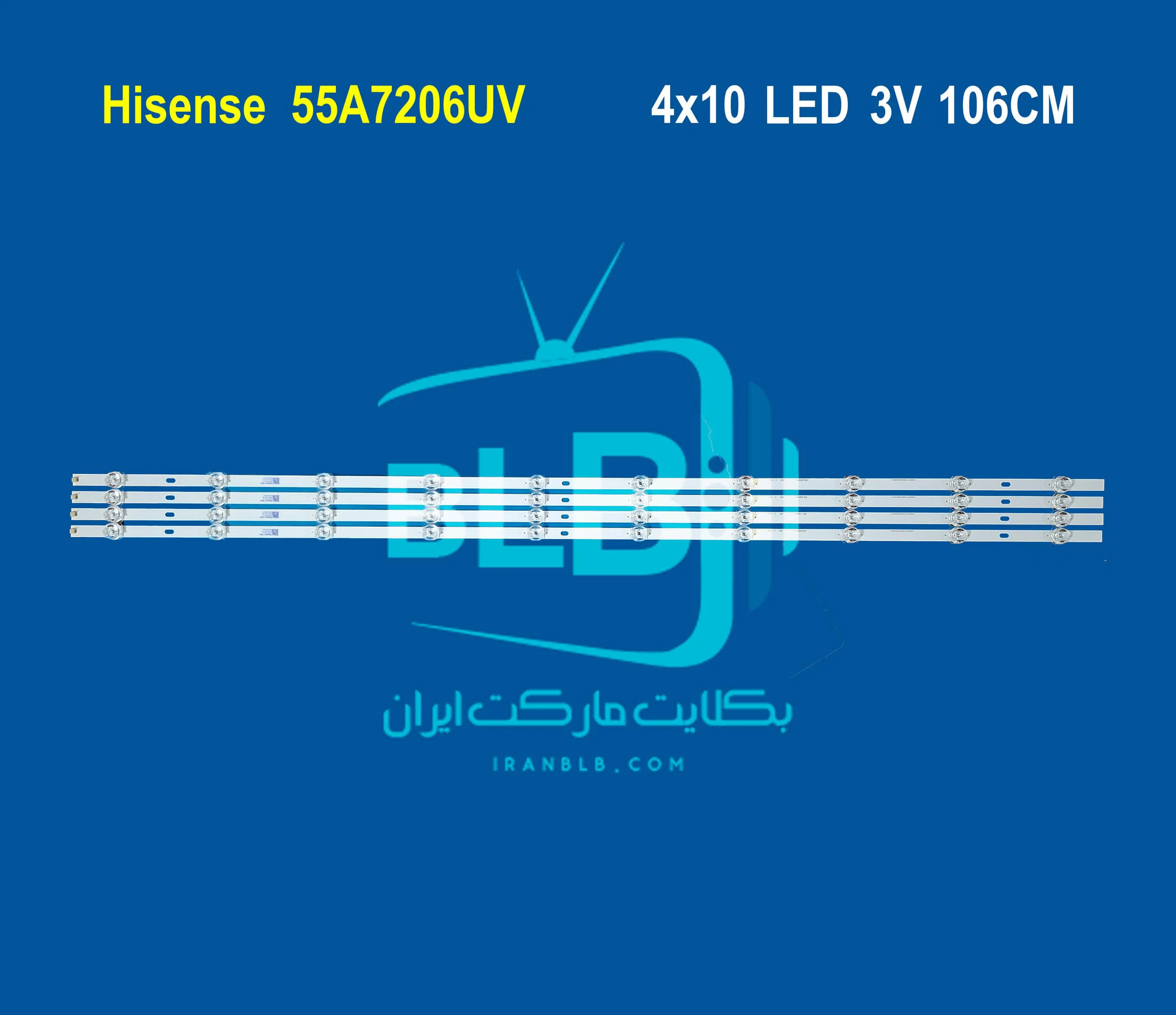 بک لایت تلویزیون هایسنس 55A7206UV دارای 4 شاخه می باشد بطوریکه  هر شاخه شامل 10 ال ای دی با ولتاژ 3 ولت است. طول هرشاخه 106 سانتی متر می باشد.