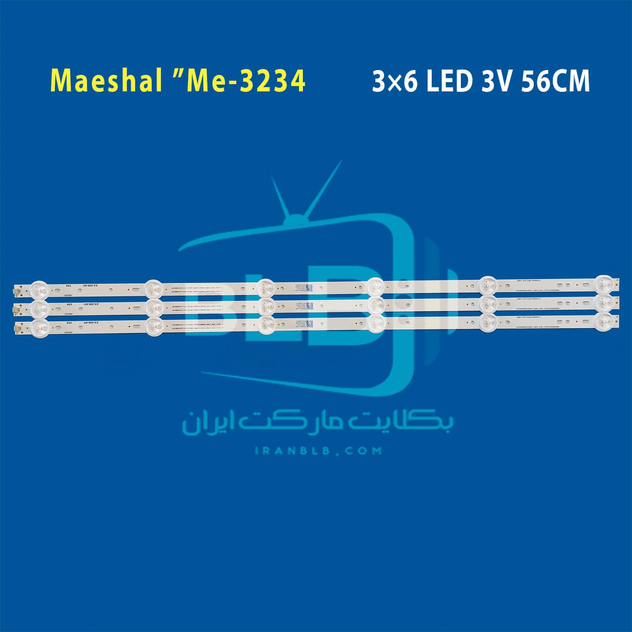 بک لایت تلویزیون مارشال ME-3235 دارای 3 شاخه می باشد بطوریکه هر شاخه شامل 6 ال ای دی با ولتاژ 3 ولت و به طول 56 سانتی متر می باشد.
