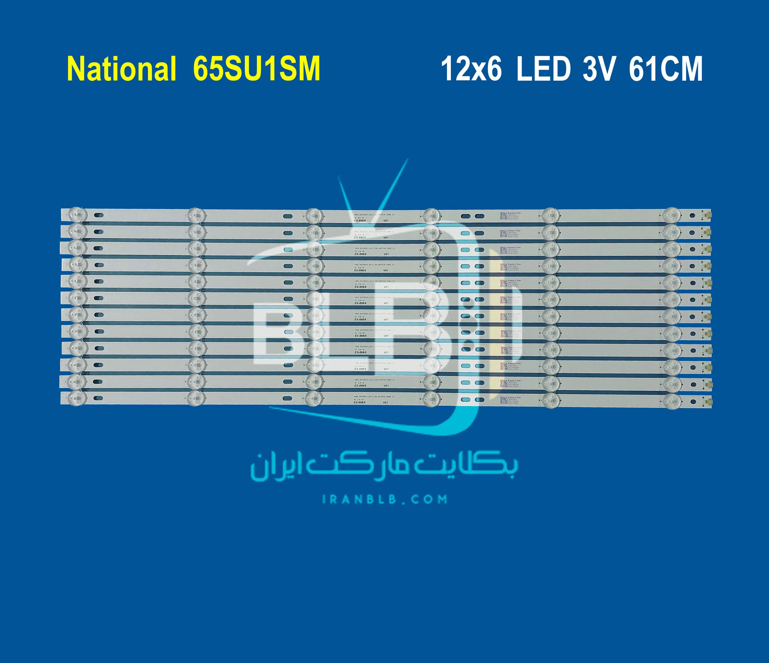 بک لایت تلویزیون نشنال 65SU1SM دارای 12 شاخه می باشد بطوریکه  هر شاخه شامل 6 ال ای دی با ولتاژ 3 ولت و به طول 61 سانتی متر می باشد.