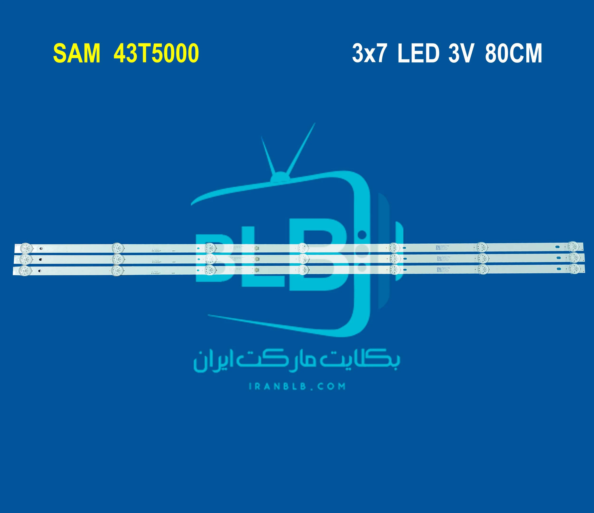 بک لایت تلویزیون سام 43T5000 دارای 3 شاخه می باشد بطوریکه  هر شاخه شامل 7 ال ای دی با ولتاژ 3 ولت است. طول هرشاخه 80 سانتی متر می باشد.