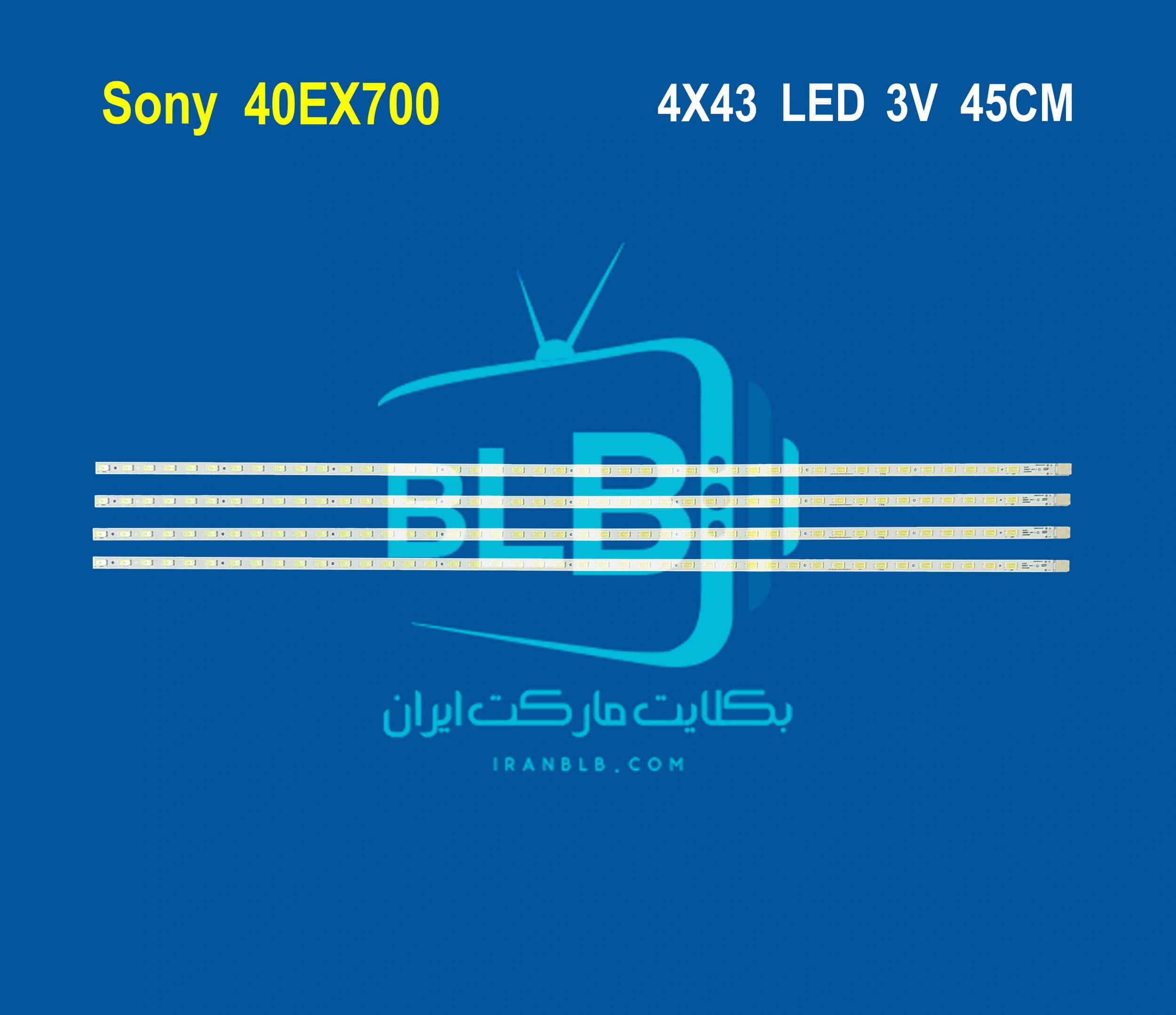 بک لایت تلویزیون سونی 40EX700 دارای 4 شاخه می باشد بطوریکه  هر شاخه شامل 43 ال ای دی با ولتاژ 3 ولت است. طول هرشاخه 45 سانتی متر می باشد.