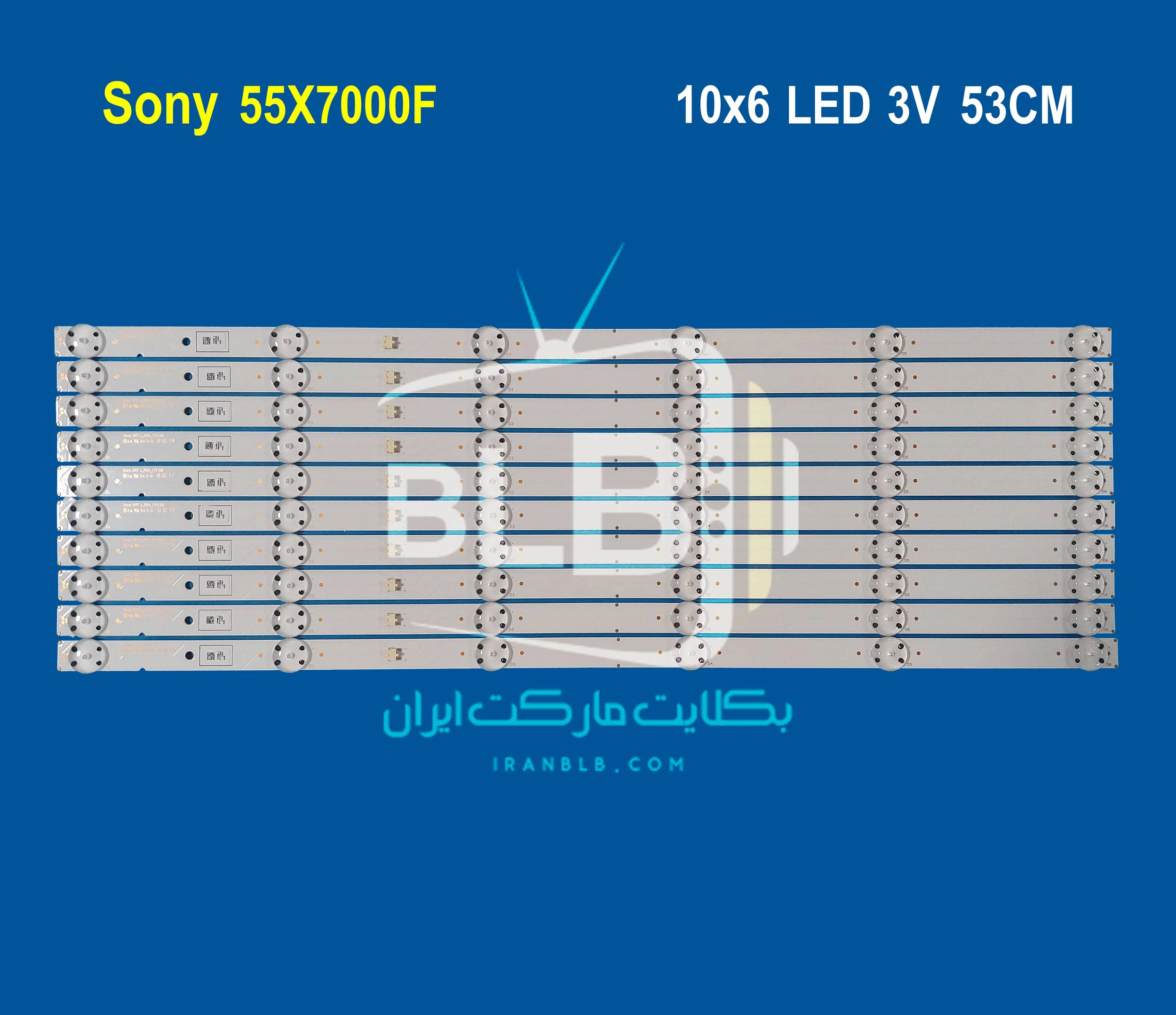 بک لایت تلویزیون سونی 55X7000F دارای 10 شاخه می باشد بطوریکه  هر شاخه شامل 6 ال ای دی با ولتاژ 3 ولت است. طول هرشاخه 53 سانتی متر می باشد.
