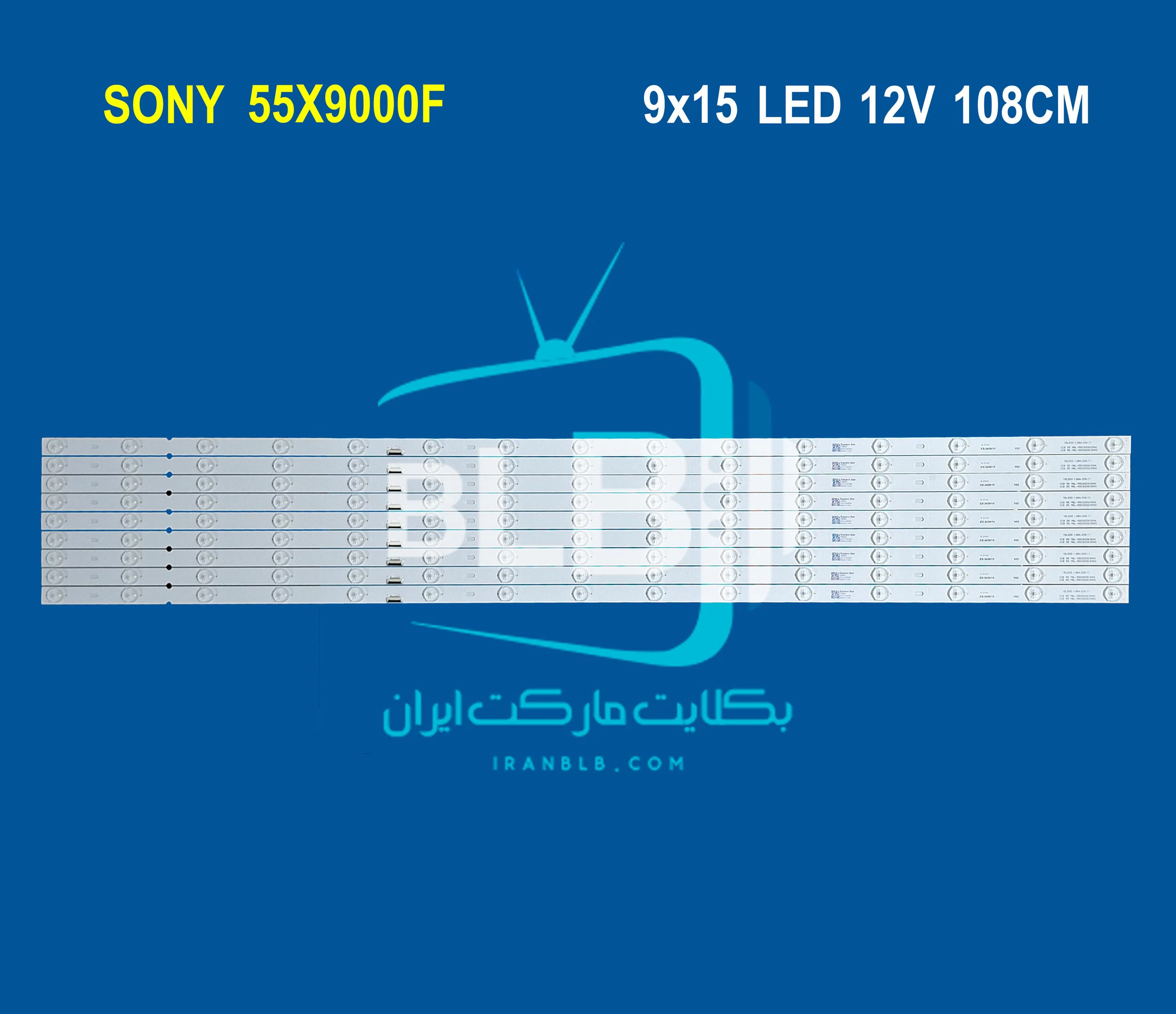 بک لایت تلویزیون سونی 55X9000F دارای 9 شاخه می باشد بطوریکه  هر شاخه شامل 15 ال ای دی با ولتاژ 15 ولت و به طول  108 سانتی متر می باشد.