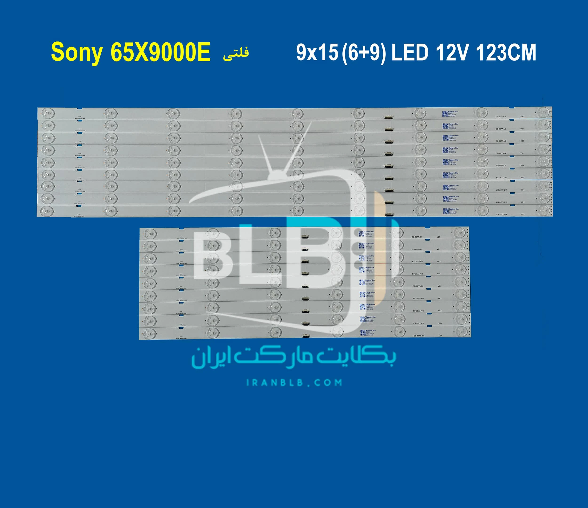 بک لایت تلویزیون سونی 65X9000E فلتی دارای 9 شاخه می باشد بطوریکه  هر شاخه شامل 15 ال ای دی با ولتاژ 12 ولت است. طول هرشاخه 123 سانتی متر می باشد.