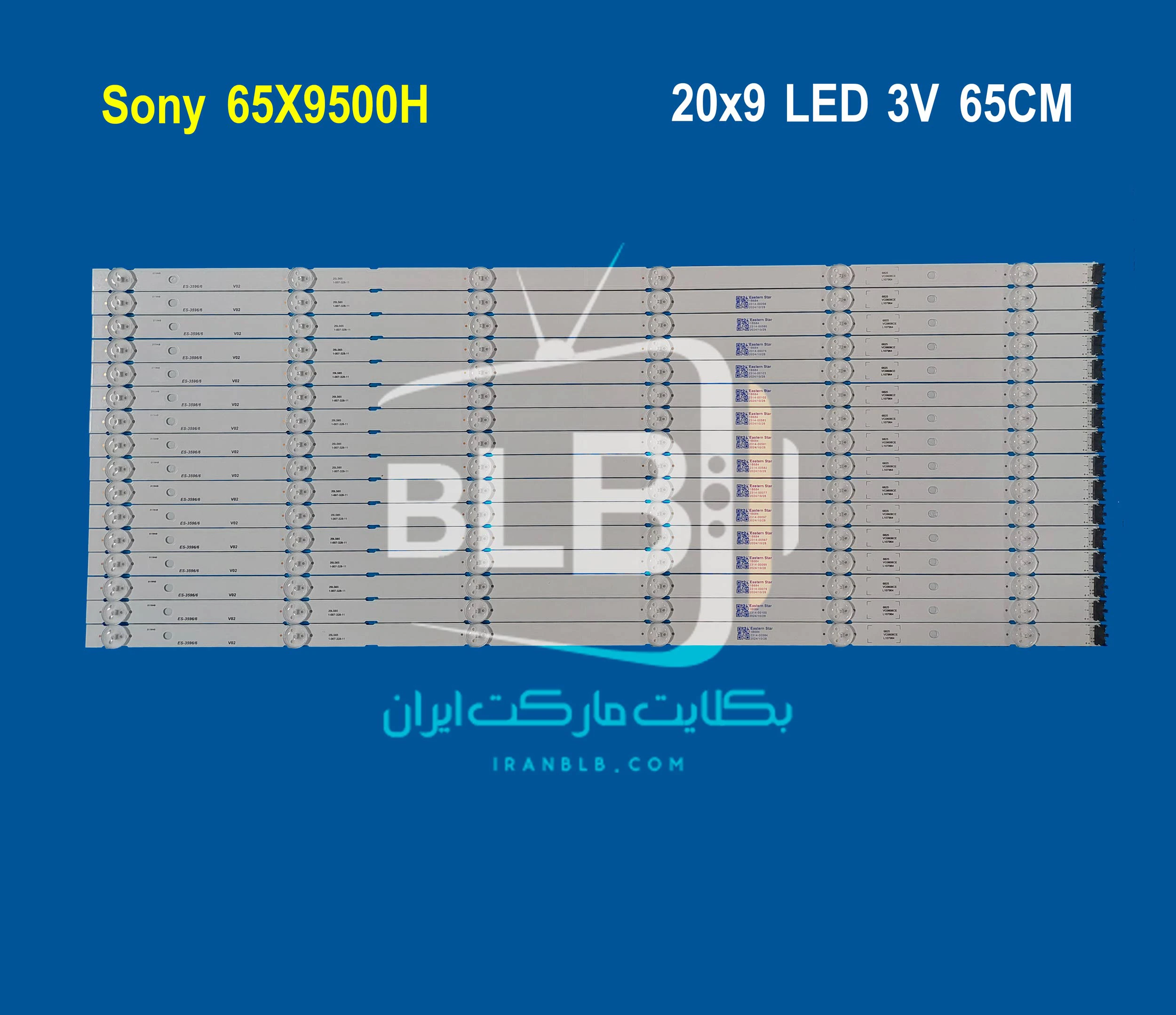 بک لایت تلویزیون سونی 65X9500H دارای 20 شاخه می باشد بطوریکه  هر شاخه شامل 9 ال ای دی با ولتاژ 3 ولت است. طول هرشاخه 65 سانتی متر می باشد.