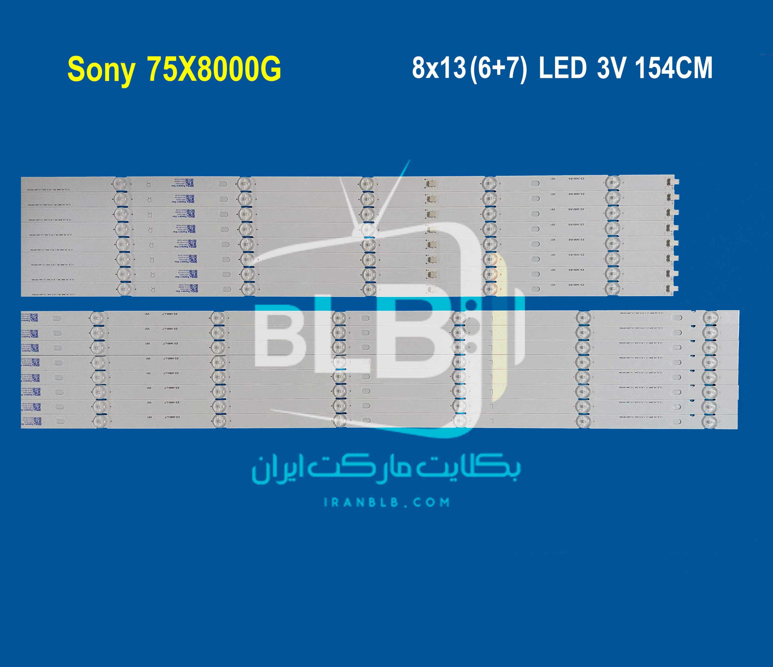 بک لایت تلویزیون سونی 75X8000G دارای 8 شاخه می باشد بطوریکه هر شاخه شامل 13 ال ای دی با ولتاژ 3 ولت است. طول هرشاخه 154 سانتی متر می باشد.