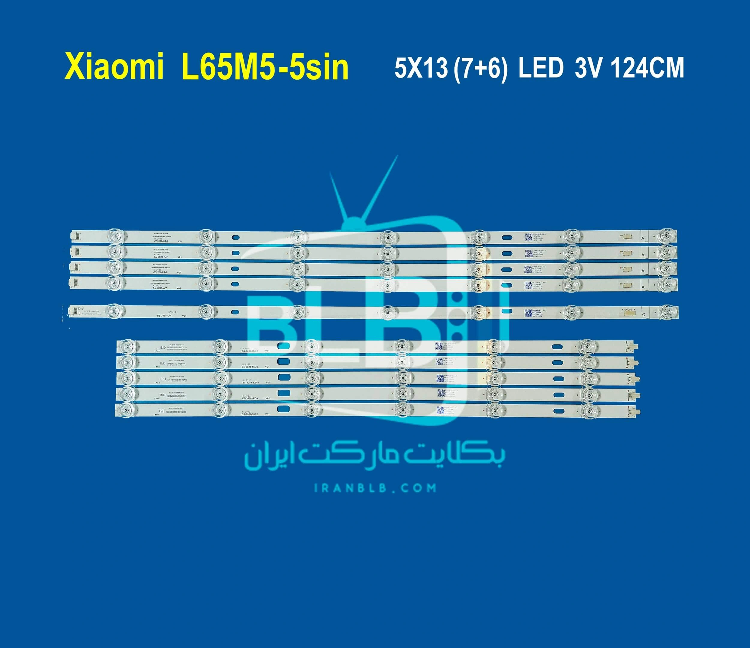 بکلایت تلویزیون شیائومی L65M5-5sin دارای 5 شاخه می باشد بطوریکه  هر شاخه شامل (6+7)13 ال ای دی با ولتاژ 3 ولت و به طول 124 سانتی متر می باشد.