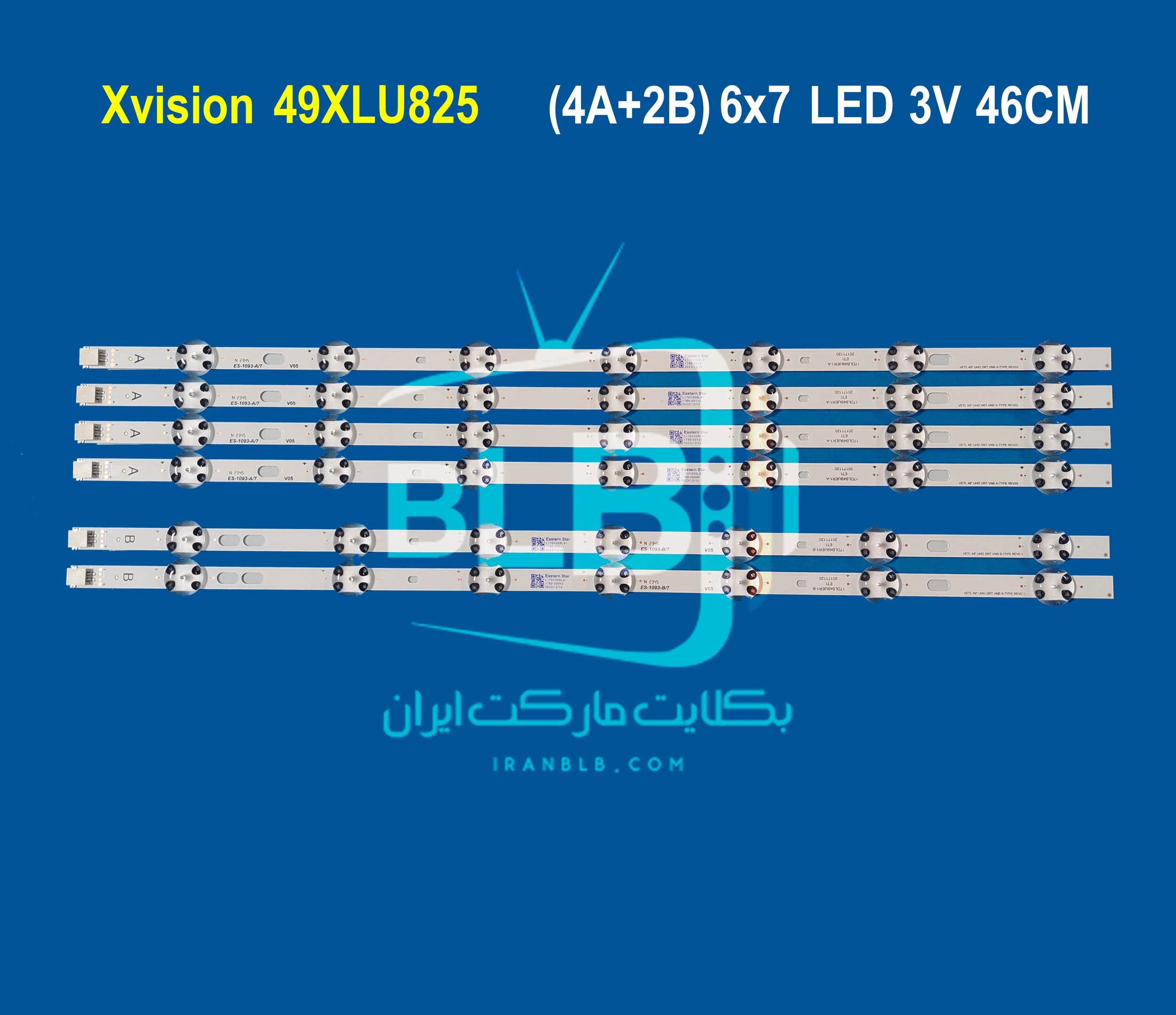 بک لایت تلویزیون ایکس ویژن 49XLU825 مناسب تلویزیون‌های 49 اینچ ایکس ویژن Xvision بوده و دارای 6 شاخه  است که در هر ردیف 7 عدد LED لنزدار با ولتاژ 3 ولت به‌کار رفته است، این بک لایت از برد آلومینیومی PCB ساخته شده که به دفع بهتر حرارت کمک می‌کند و در پشت شاخه‌ها چسب سیلیکونی آبی رنگ مخصوص نصب شده است، همچنین با نوردهی یکنواخت، بدون ایجاد سایه و هاله، کیفیت تصویر مطلوب و روشنایی استاندارد را فراهم می‌کند.